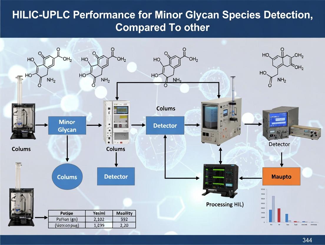 This comparison guide evaluates the performance of Hydrophilic Interaction Liquid Chromatography with Ultra-Performance Liquid Chromatography (HILIC-UPLC) against alternative techniques for detecting and quantifying minor glycan species. The analysis is framed within the broader thesis that HILIC-UPLC offers superior resolution, sensitivity, and speed for these critical applications.