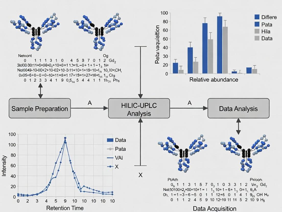 1. Method Principle and Optimization The HILIC mechanism employs a polar stationary phase (e.g., bridged ethylene hybrid [BEH] amide or silica) with a mobile phase of high organic content (typically acetonitrile >70%) and a small percentage of aqueous buffer. Analyte retention is based on hydrophilicity and partitioning. For mAb released N-linked glycans, fluorescent labeling (e.g., 2-AB) is standard. The method was optimized for robustness per ICH Q2(R1) guidelines.