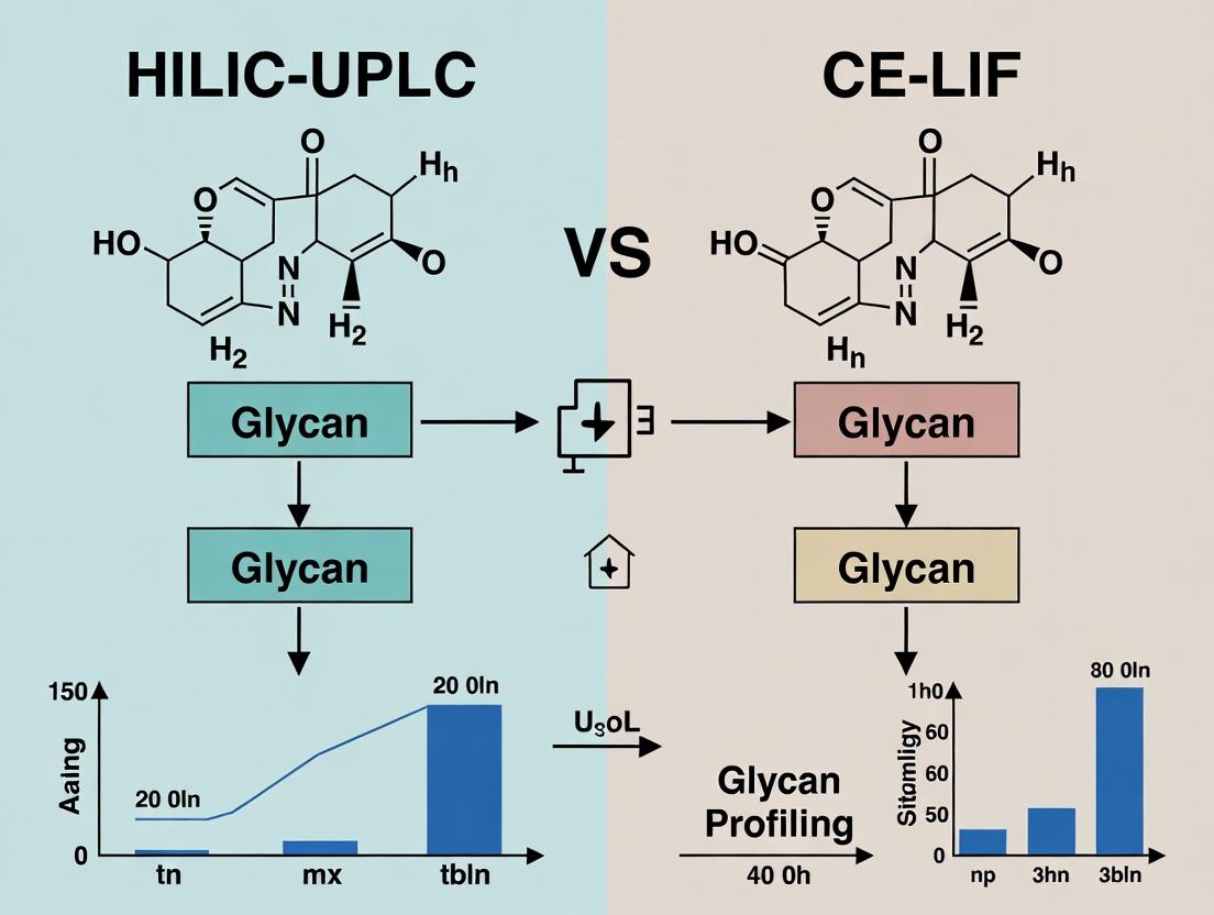 Glycosylation, the enzymatic attachment of sugar chains (glycans) to a protein, is a critical quality attribute (CQA) for biopharmaceuticals. It directly influences drug safety, efficacy, stability, and immunogenicity. Variations in glycan profiles can alter mechanisms of action, such as Antibody-Dependent Cellular Cytotoxicity (ADCC) in monoclonal antibodies, or impact circulatory half-life. Therefore, precise and reliable glycan profiling is non-negotiable in biopharmaceutical development and quality control. This guide compares the two predominant analytical techniques for this task: Hydrophilic Interaction Liquid Chromatography coupled with Ultra-Performance Liquid Chromatography (HILIC-UPLC) and Capillary Electrophoresis with Laser-Induced Fluorescence (CE-LIF).